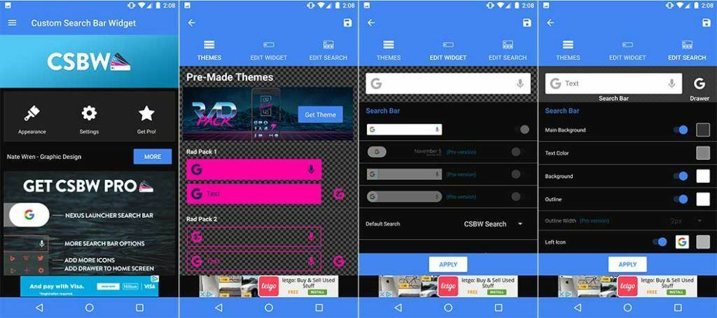 CSBW doesn’t change your launcher’s stock search bar. It includes its own editable search bar that you need to add to your home screen from your widget menu.